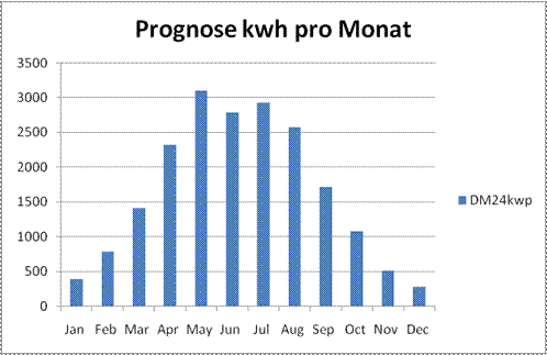 | Prognosedaten (ermittelt für Standort mit PVGIS) |